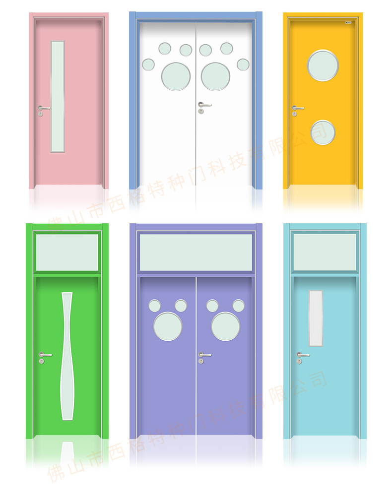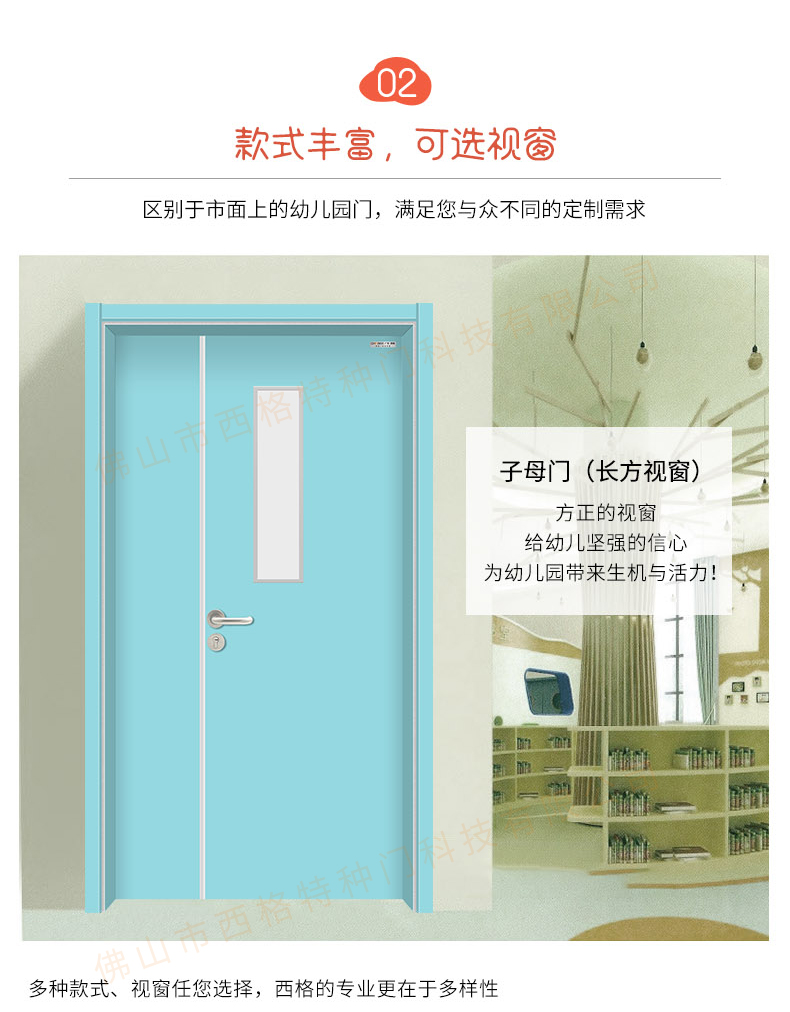 HPL幼兒園子母門-長(zhǎng)方視窗-淡藍(lán)