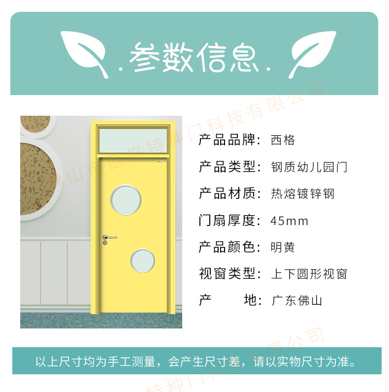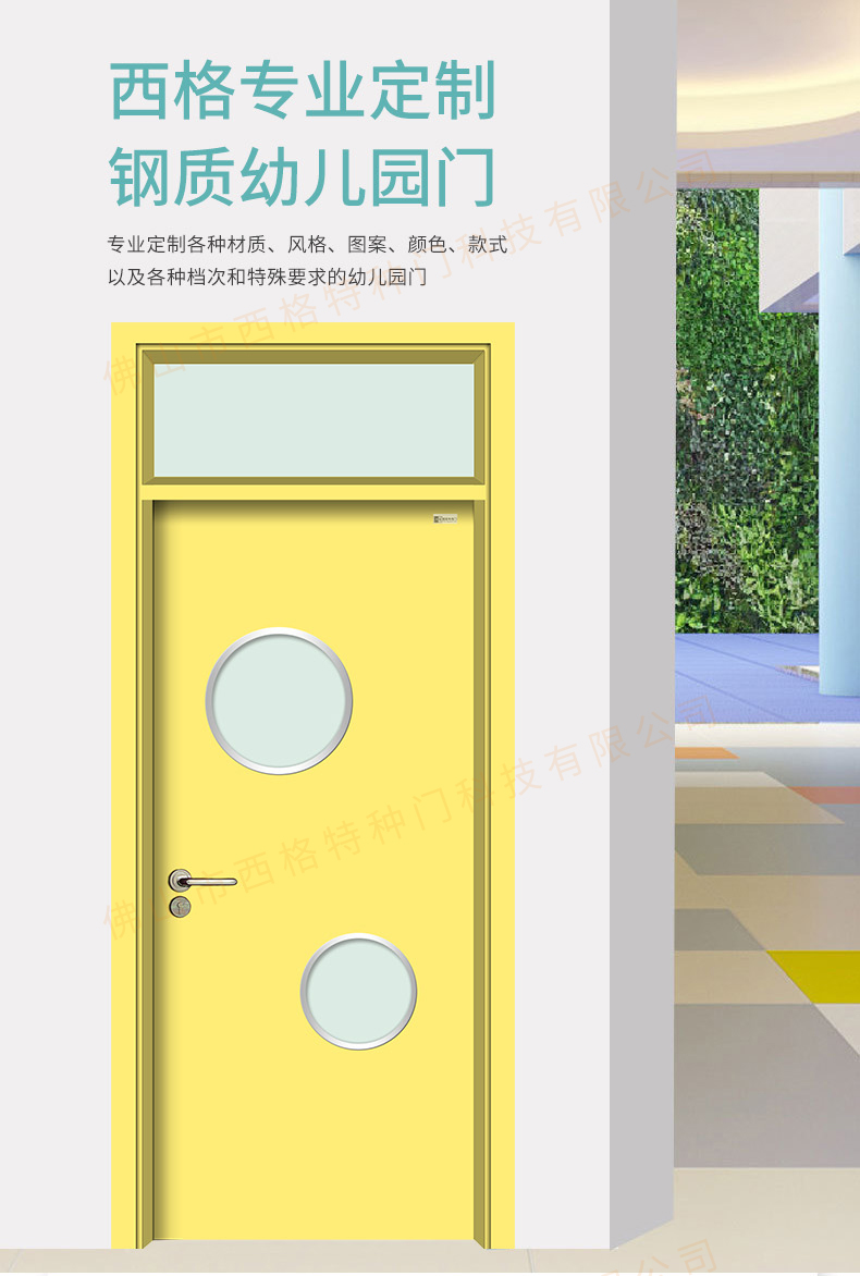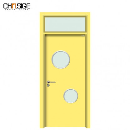 鋼質幼兒園門-帶亮窗-上下圓視窗-明黃