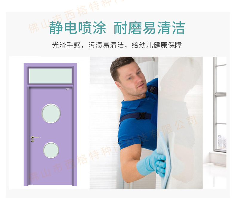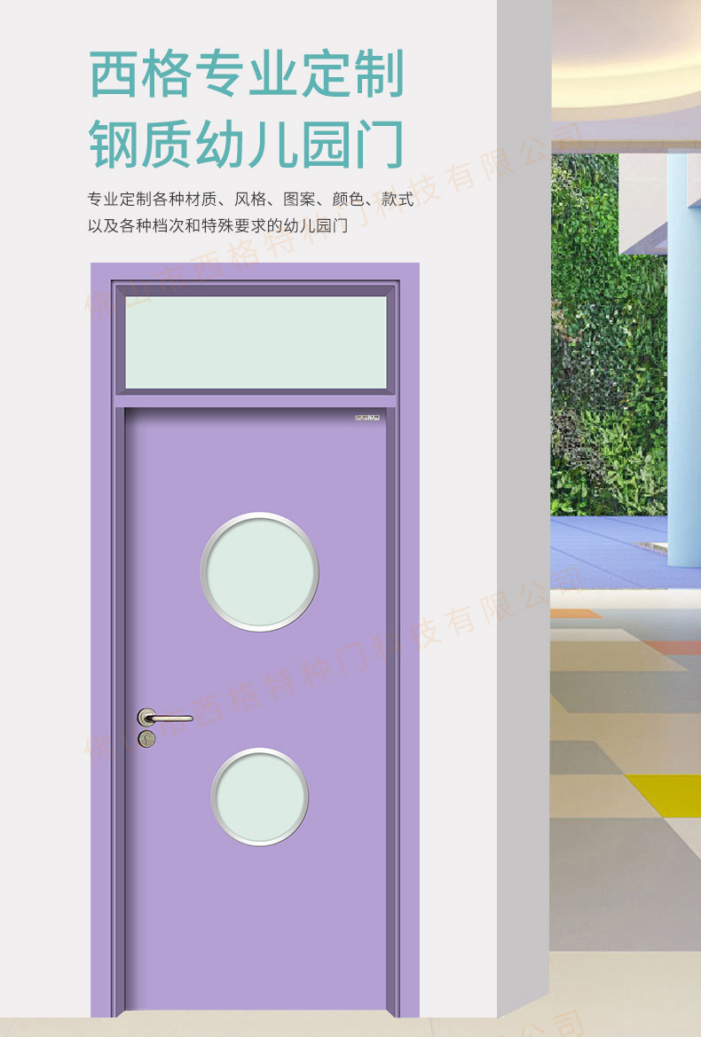 鋼質幼兒園門-帶亮窗-上下圓視窗-淺紫羅蘭