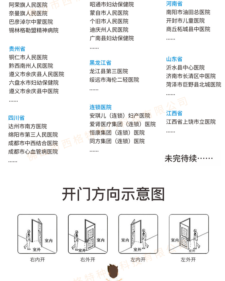 產品簡介:chnsige西格特種門,專業生產醫院門,醫院診室門,醫院辦公室門,醫院衛生間門,木質醫院門,鋼質醫院門,多鐘款式、顏色,尺寸可定制。