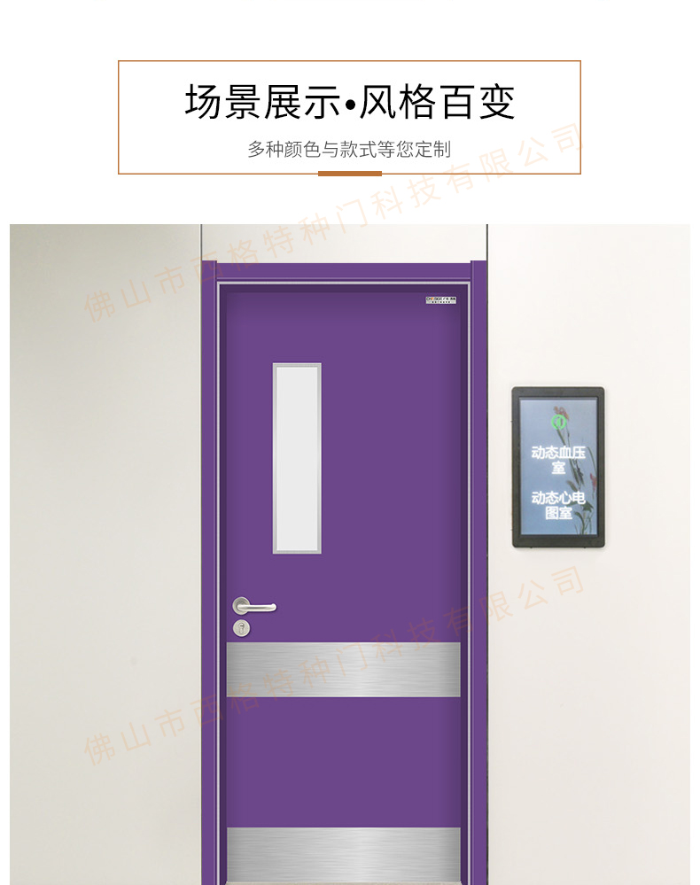產品簡介:chnsige西格特種門,專業生產醫院門,醫院診室門,醫院辦公室門,醫院衛生間門,木質醫院門,鋼質醫院門,多鐘款式、顏色,尺寸可定制。